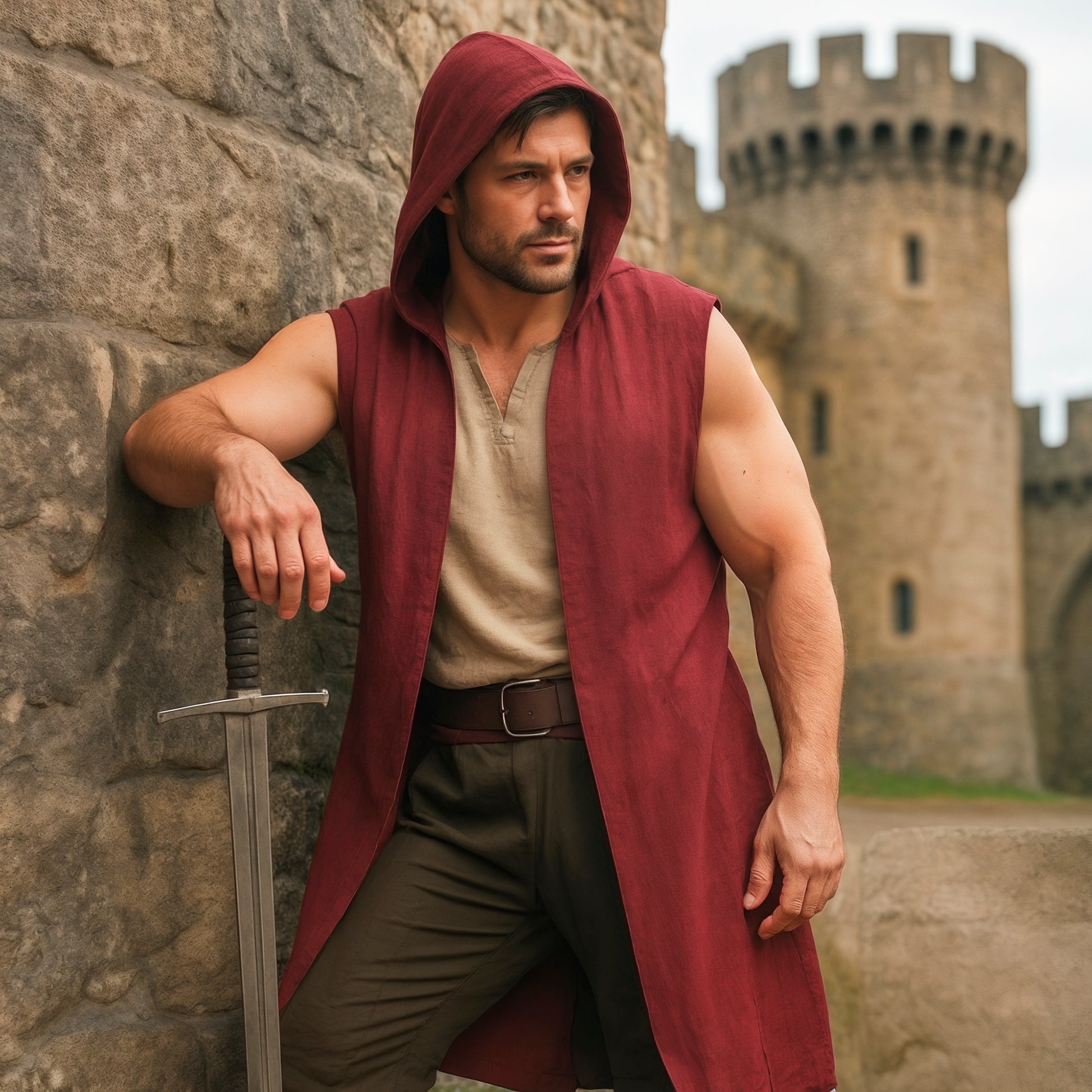🏰 Medieval Unisex Surcoat with Hood - Step cloaked in shadows into a world of fantasy with our versatile Open-Front Surcoat, designed for both men and women. This sleeveless linen tunic offers unparalleled freedom of movement, making it a practical and stylish addition to your medieval or Renaissance wardrobe.